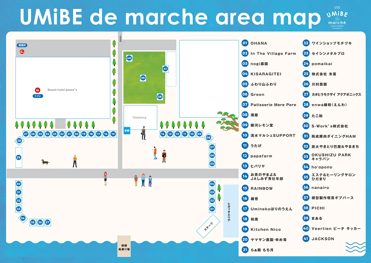 清水の食材をふんだんに使用したグルメの数々、三保を連想させるこだわりの商品、心地よい音楽とワークショップなど、美しい景色の中で地元の魅力に触れ、心温まる出会いが生まれるひとときをお楽しみいただけます。